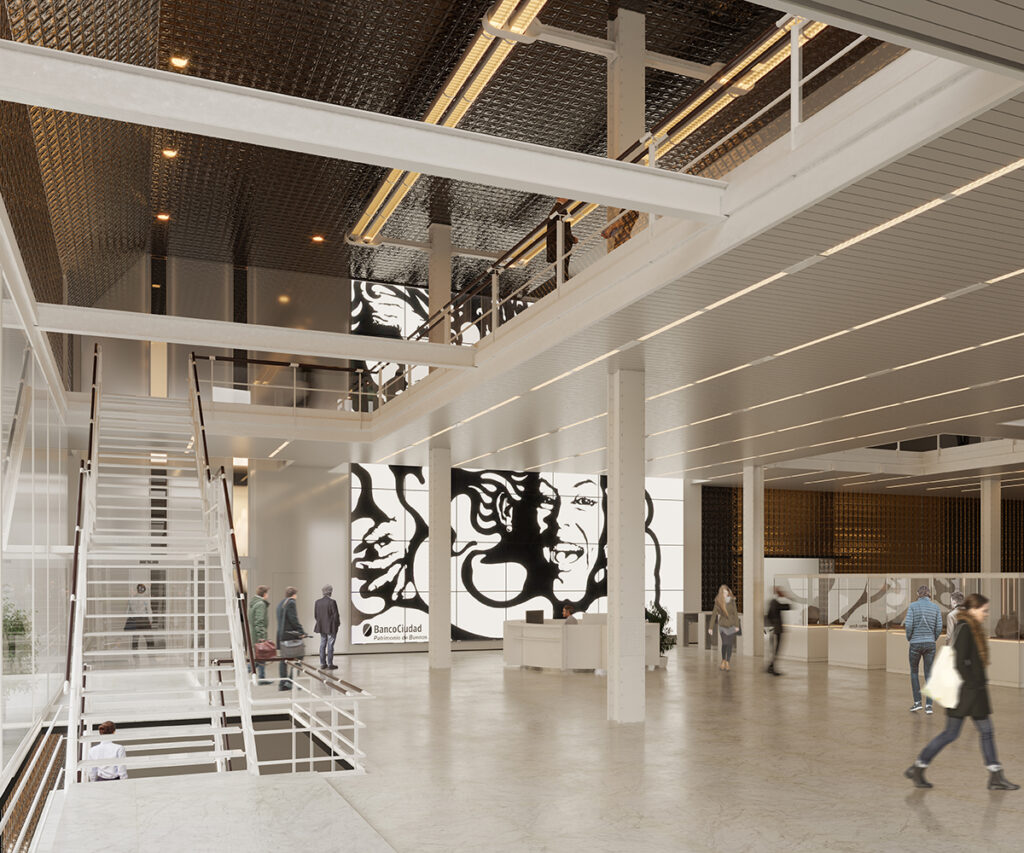 Oficinas administrativas del Banco Ciudad, sucursal Casa Matriz (mínima intervención), Museo del Banco “Monte de Piedad”, Salas de exposiciones transitorias, comedor de funcionarios.