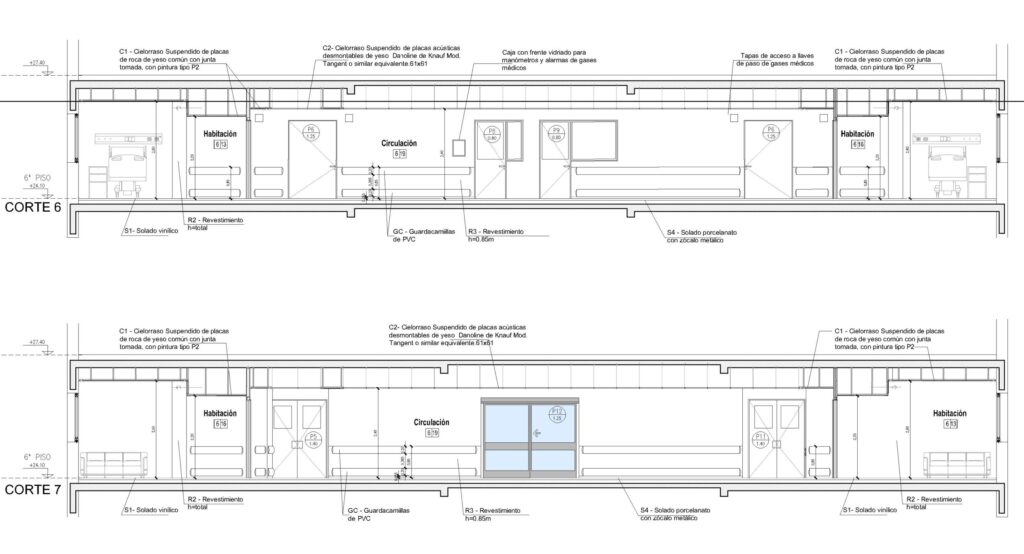Reconversión de un área de consultorios en habitaciones de internación: 8 habitaciones de internación con enfermería y áreas de apoyo
