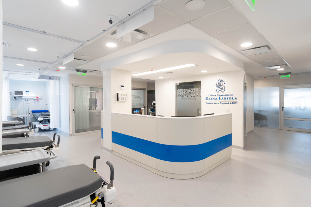 Dentro de un ala del hospital, se organiza una unidad de pediatría moderna, con habitaciones individuales, tabique de placa de yeso pintadas con epoxi y cabezales con gases médicos para cada paciente.
