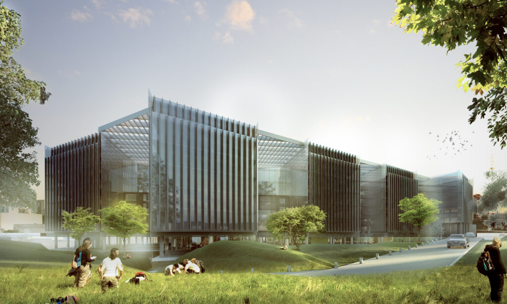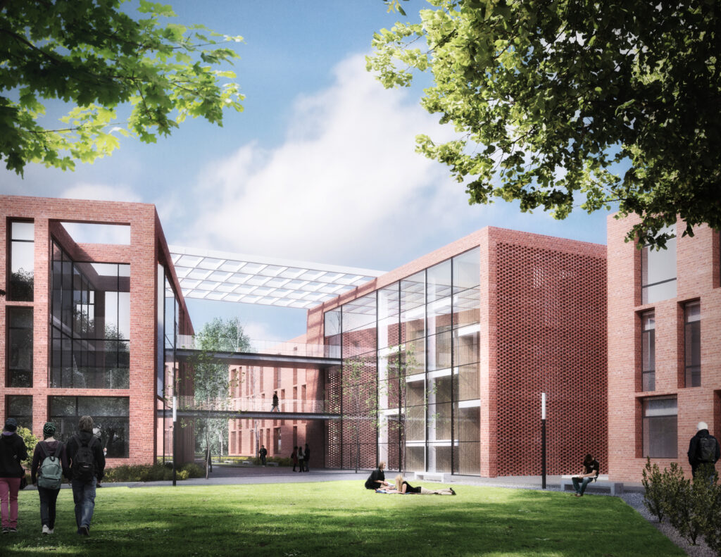 Edificio nuevo para la enseñanza teórica, con aulas divisibles y anexos.